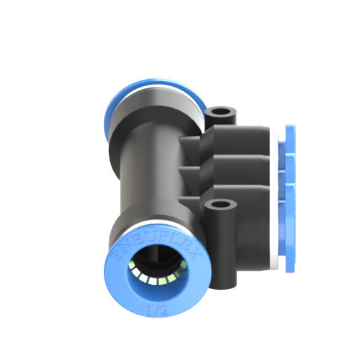 1/2" O.D tubing x 3/8" O.D tubing union branch reducer push to connect fitting is used for in-line distribution of air to three smaller diameter tubing connections at a right angle to the supply line. 1/2" O.D tubing x 3/8" O.D tubing union branch connector reducer push to connect fitting is made of strong thermoplastic (PBT) and stainless steel tube gripping claw. 1/2" O.D tubing x 3/8" O.D tubing union branch reducer push to connect fittings are a type of fitting that is easy to assemble and used for low-flow tubing applications.