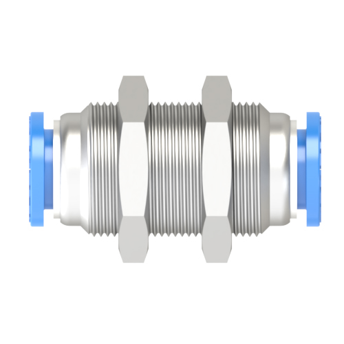3/8" O.D tube bulkhead union push to connect fitting is used to connect two 3/8" O.D tubing on both ends through a panel or other barrier. Bulkhead union fitting is used when there is a need to move 3/8" tubing through some obstacle. Simply drill a hole, push one part of bulkhead through it, and then screw second part onto the other side. 3/8" O.D tubing x 3/8" O.D tubing bulkhead union push to connect fitting is made of nickel plated brass, POM release sleeve and stainless steel tube gripping claws. 3/8" O.D tubing equal bulkhead union push to connect fittings guarantee leak-free and secure connections for all of your pneumatic applications.