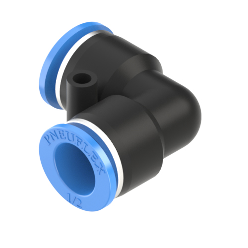 1/2" O.D tube union elbow push to connect fitting is used to connect two 1/2" O.D tubing with same diameter on the both ends at a right angle. 1/2" O.D tube push to connect fitting is widely used in industries automatic production equipment like machinery, electronics, automobile, packaging and medical.