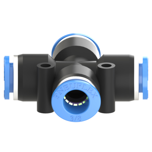 3/8" O.D tubing union cross push to connect fitting is used to connect four 3/8" O.D tubing with same diameter at right angles. 3/8" O.D tubing x 3/8" O.D tubing union cross push to connect fitting is popular choice whenever there is a need to split compressed air flow into every other direction. 3/8" O.D tubing union cross connector push to connect fitting is widely used in industries automatic production equipment like machinery, electronics, automobile, packaging and medical.